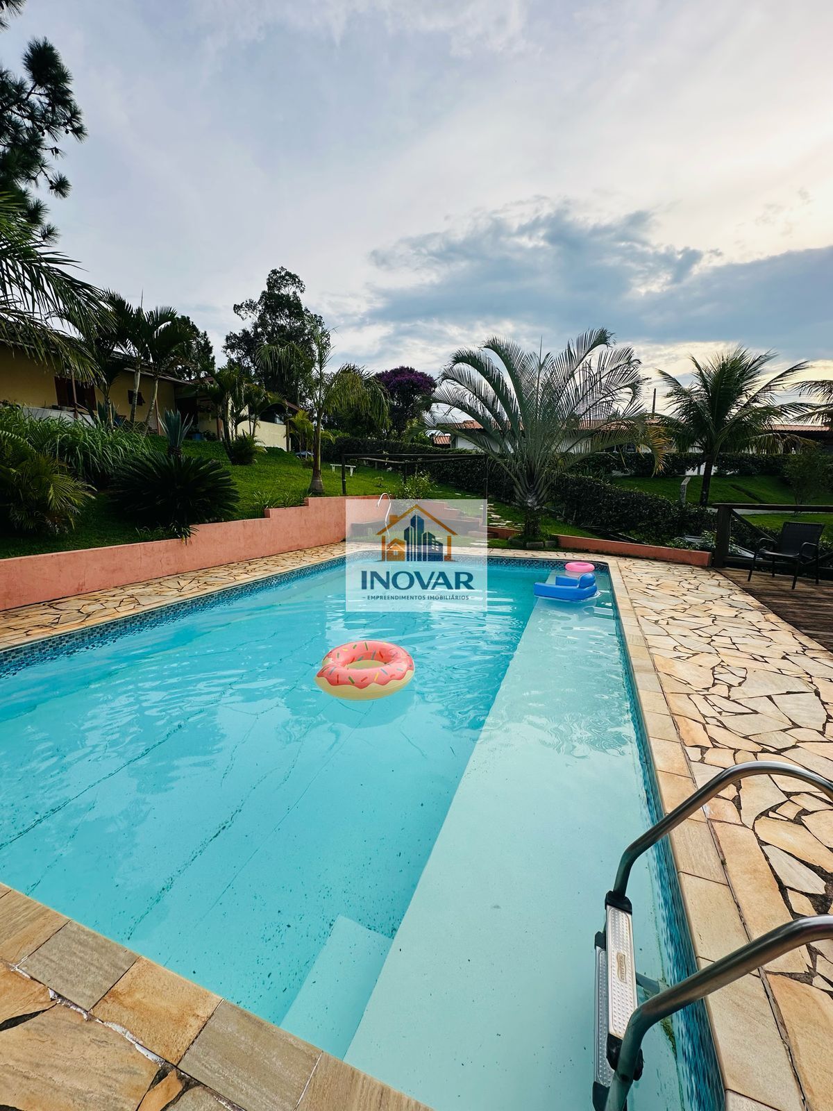 * Piscina revestida de vinil 8,5x 1,60 e prainha 0,40 (cascata e com deck)