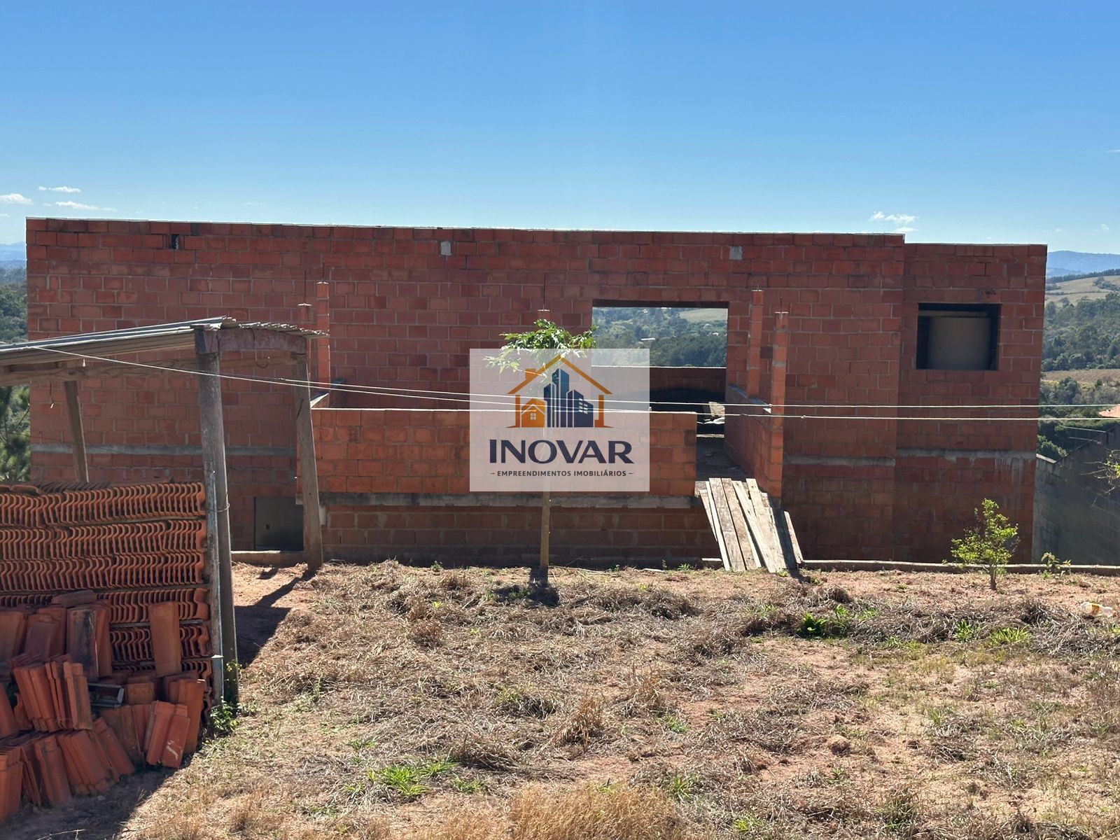 O terreno conta com duas casas em fase de acabamento, ideais para moradia familiar ou investimento:
